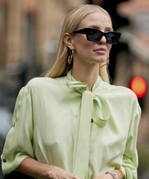 Oglądasz serial „The Crown”? Skojarzenie z Królową Elżbietą, która w jedwabnej apaszce na głowie wybiera się na polowanie, nie jest przypadkowe. To jeden z najbardziej klasycznych sposobów wiązania apaszki, tzn. ludowy. Influencerki noszą tak wiązane apaszki do codziennych stylizacji z trenczami, eleganckimi garniturami i białymi koszulami.