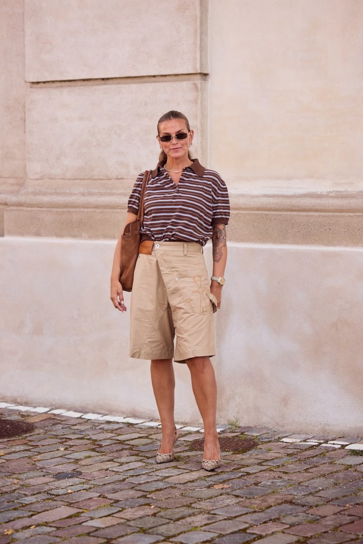 Polo świetnie przełamuje ich formalność. Taki duet dobrze wygląda z balerinami, loafersami i minimalistycznymi japonkami.