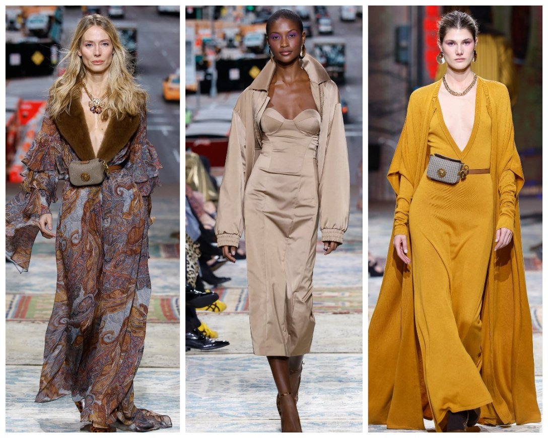 Projektanci postawili na reinterpretację klasyki lat siedemdziesiątych: pojawiają się prążki, pepitka oraz tweed zestawione ze współczesnymi fasonami. Strukturalne garnitury czy ostro skrojone marynarki płynnie przechodzą w długie lub krótkie płaszcze o nowoczesnych liniach. Nie brakuje też typowych dla bohemy akcentów: obszerne peleryny, sukienki i spódnice z cekinami zestawiane z dzianinami czy zwiewne sukienki maksi z falbanami.