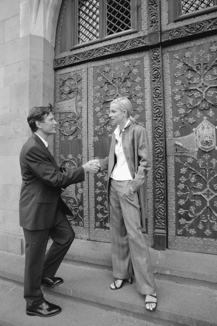 Stoimy przy drzwiach, wymieniając skrępowane uśmiechy i półkroki do przodu, bo nikt nie chciałby urazić drugiej osoby, przepuszczając ją w niewłaściwym momencie. Zaskakująco, pierwszeństwo czasem zależy od… rodzaju drzwi. Jeśli przy otwieraniu należy je pociągnąć, mężczyzna powinien przepuścić kobietę, aby to ona weszła pierwsza do pomieszczenia.
