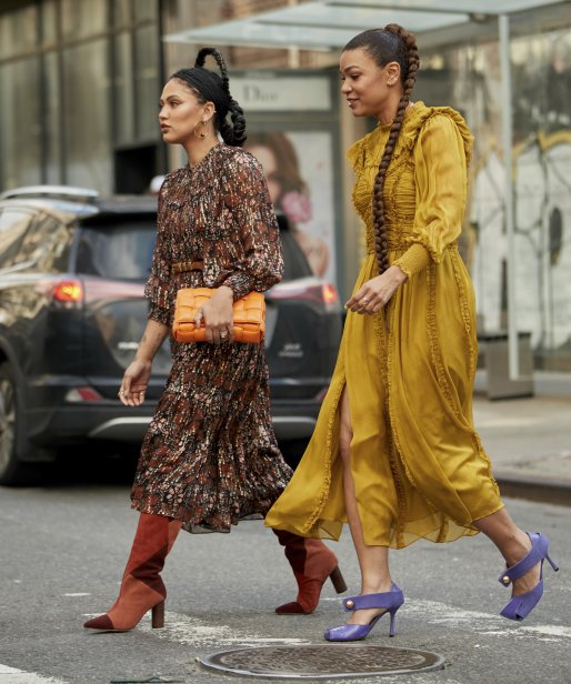 W kolekcji Pinko wyróżniają się odważne sukienki mini i maxi z jedwabiu typu faille, o odważnych kształtach inspirowanych latami 80. - z balonowymi rękawami maxi i w jaskrawych odcieniach żółci, fuksji i szmaragdowej zieleni.