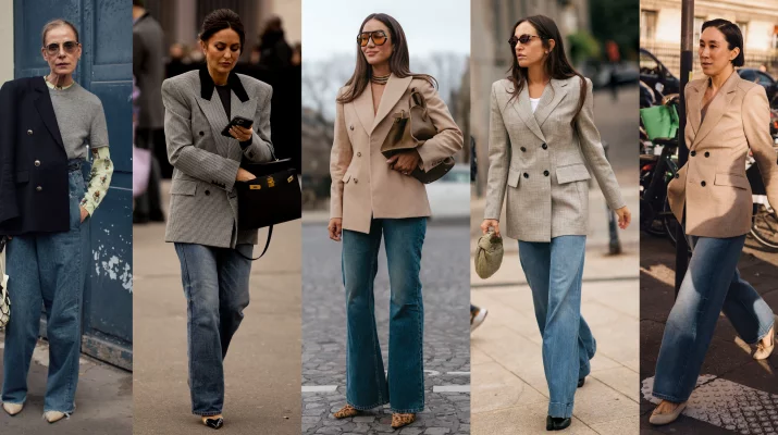 Dwurzędowa marynarka i jeansy flare to nowy sposób Francuzek na klasyczną stylizację